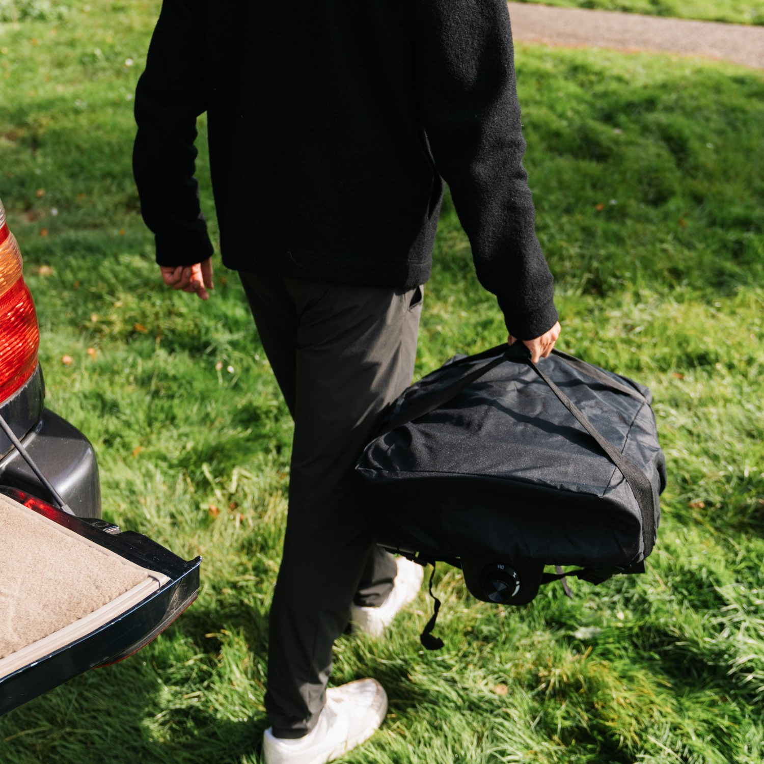 Bij het ontwerp staat mobiliteit centraal. De tas is uitgerust met versterkte handgrepen zodat je de oven comfortabel over langere afstanden kunt dragen. De bag klik je aan de onderkant vast met 2 clips wat het in- en uitpakken van de oven moeiteloos maakt. Geen gedoe met krappe openingen; je plaatst de bag over de oven, twee kliks en klaar.