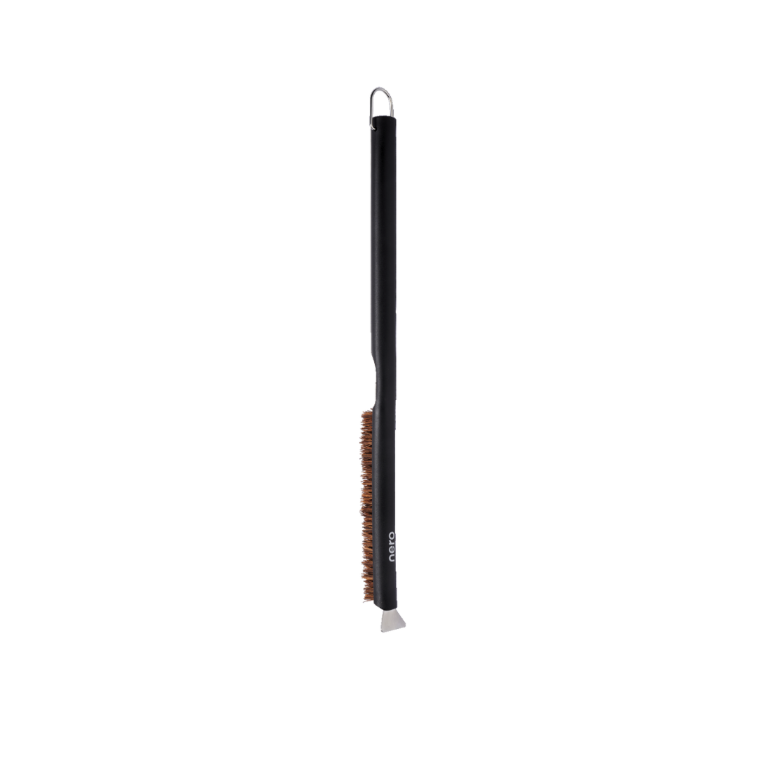 De Nero Pro Cleaning Brush is voorzien van een RVS spatel aan de voorzijde van de borstel. Hiermee verwijder je gemakkelijk hardnekkige resten op de Nero Pizza Staan. Met de Eco Palmyra borstel veeg je de steen in een handomdraai schoon na ieder gebruik. Dit voorkomt o.a. dat je pizza aan de onderzijde restanten van jouw vorige kook-sessie oppakt.